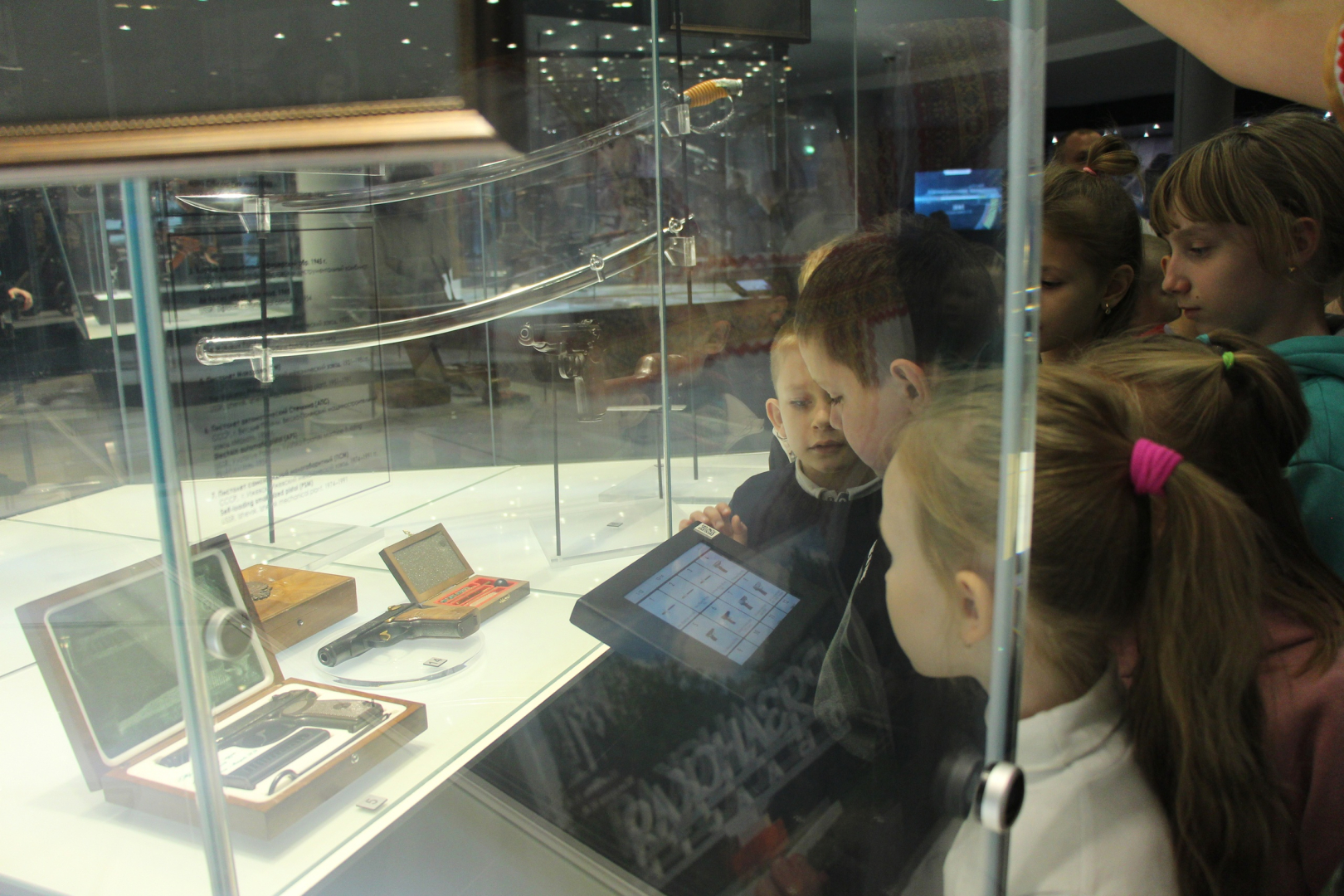 На интерактивных площадках они совершили увлекательное виртуальное путешествие по городам России, почувствовали себя в роли мастеров оружейников в программе «Связь времен - сила поколений!» и приняли участие в игре-викторине «Оружие в различных видах искусства».