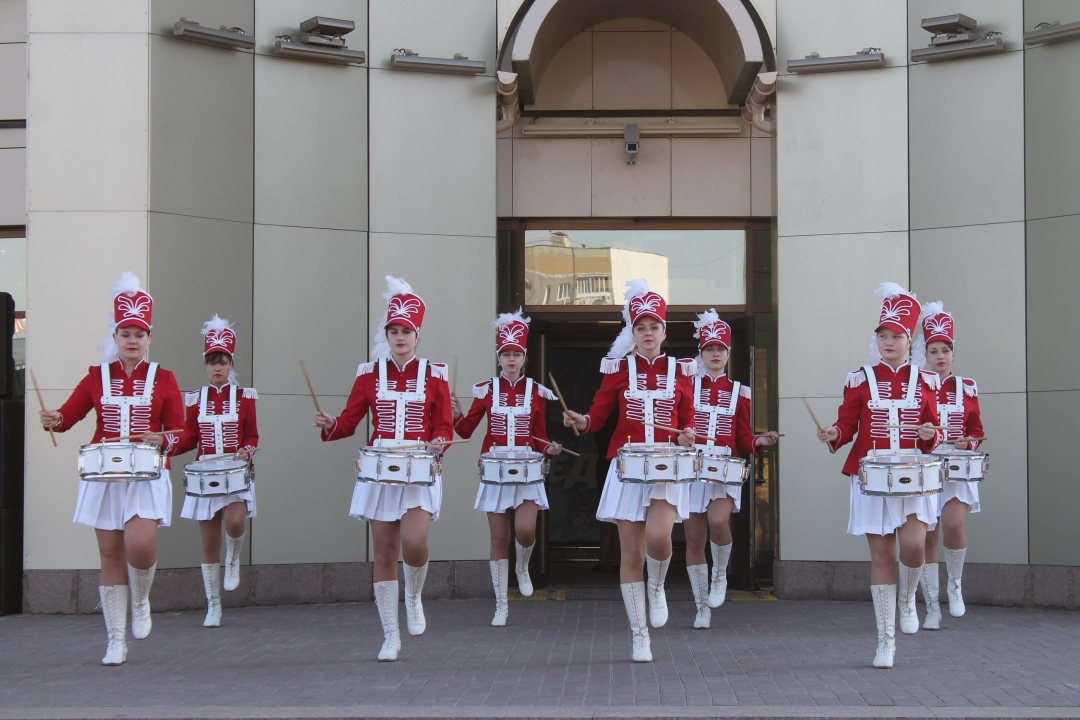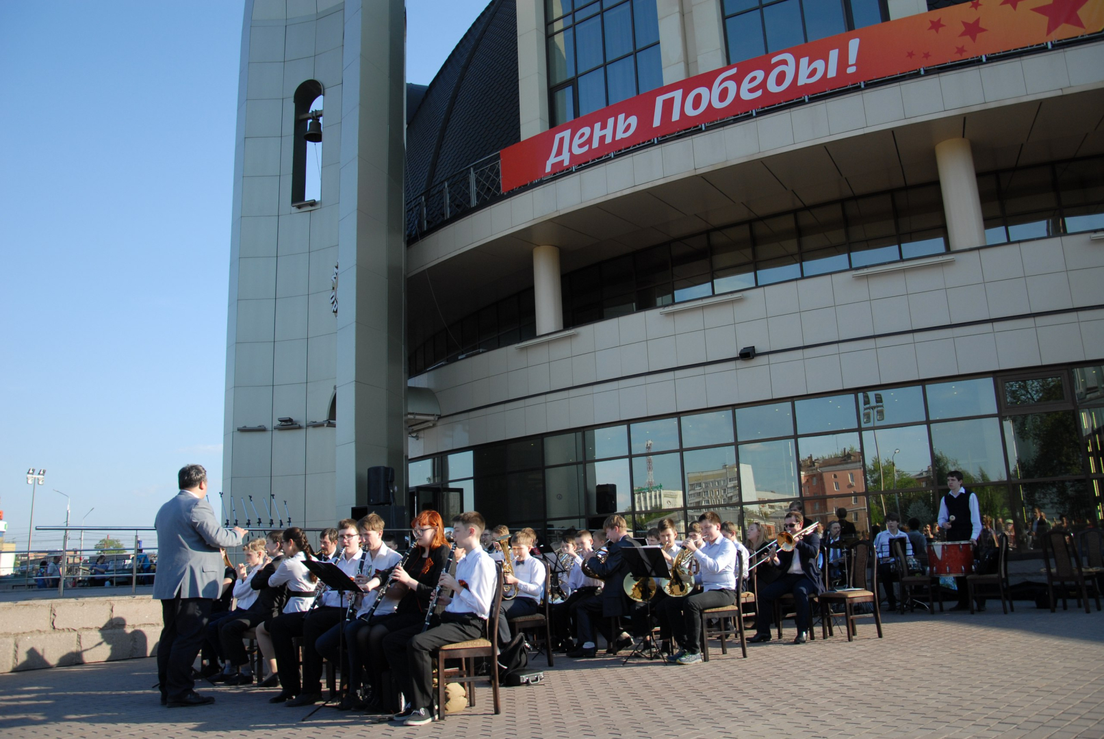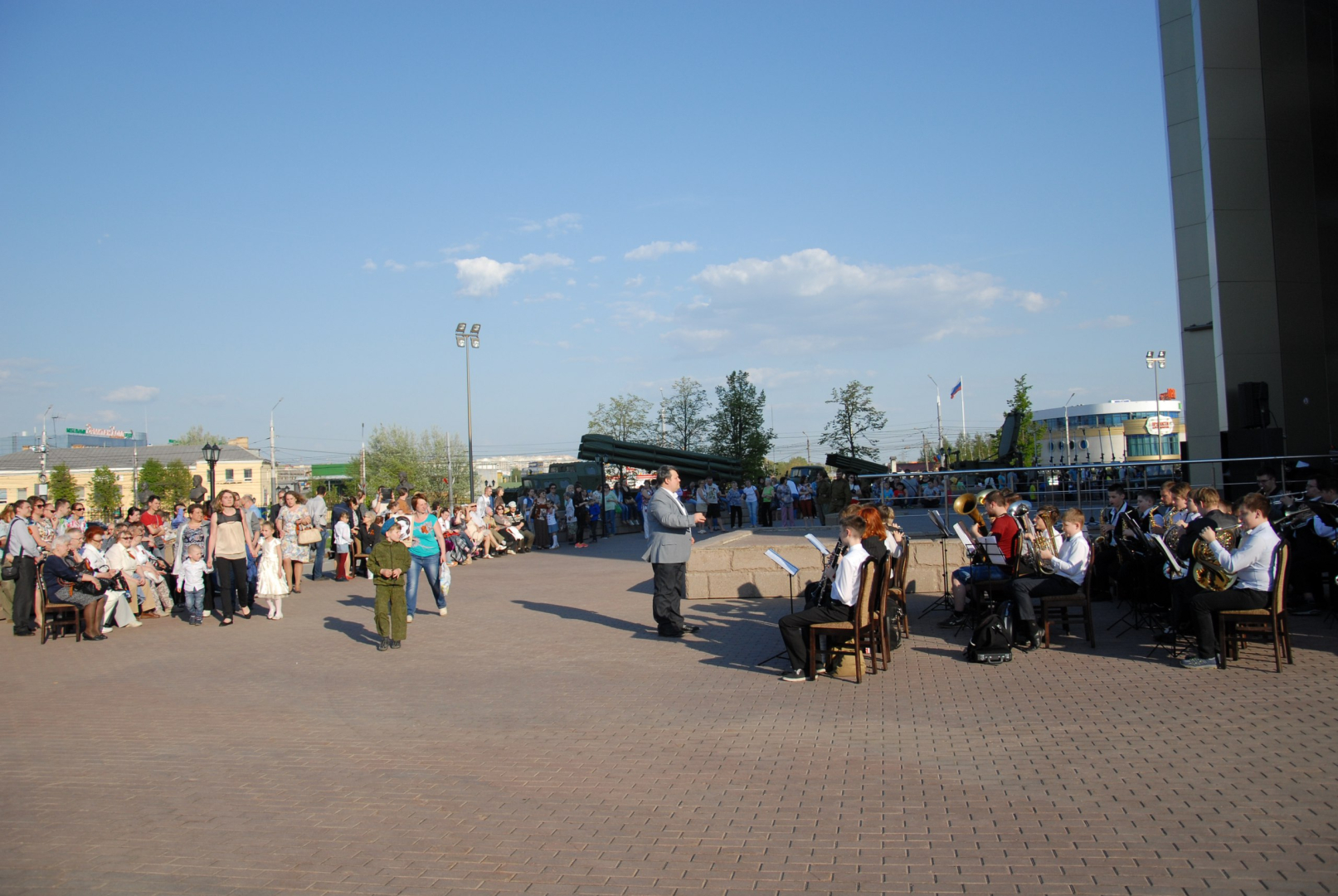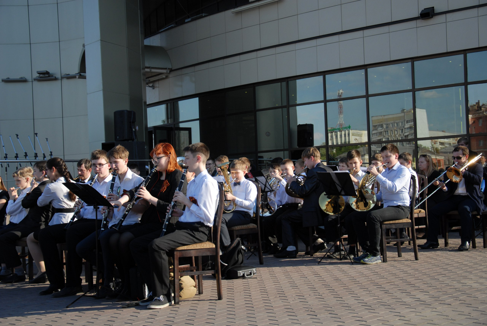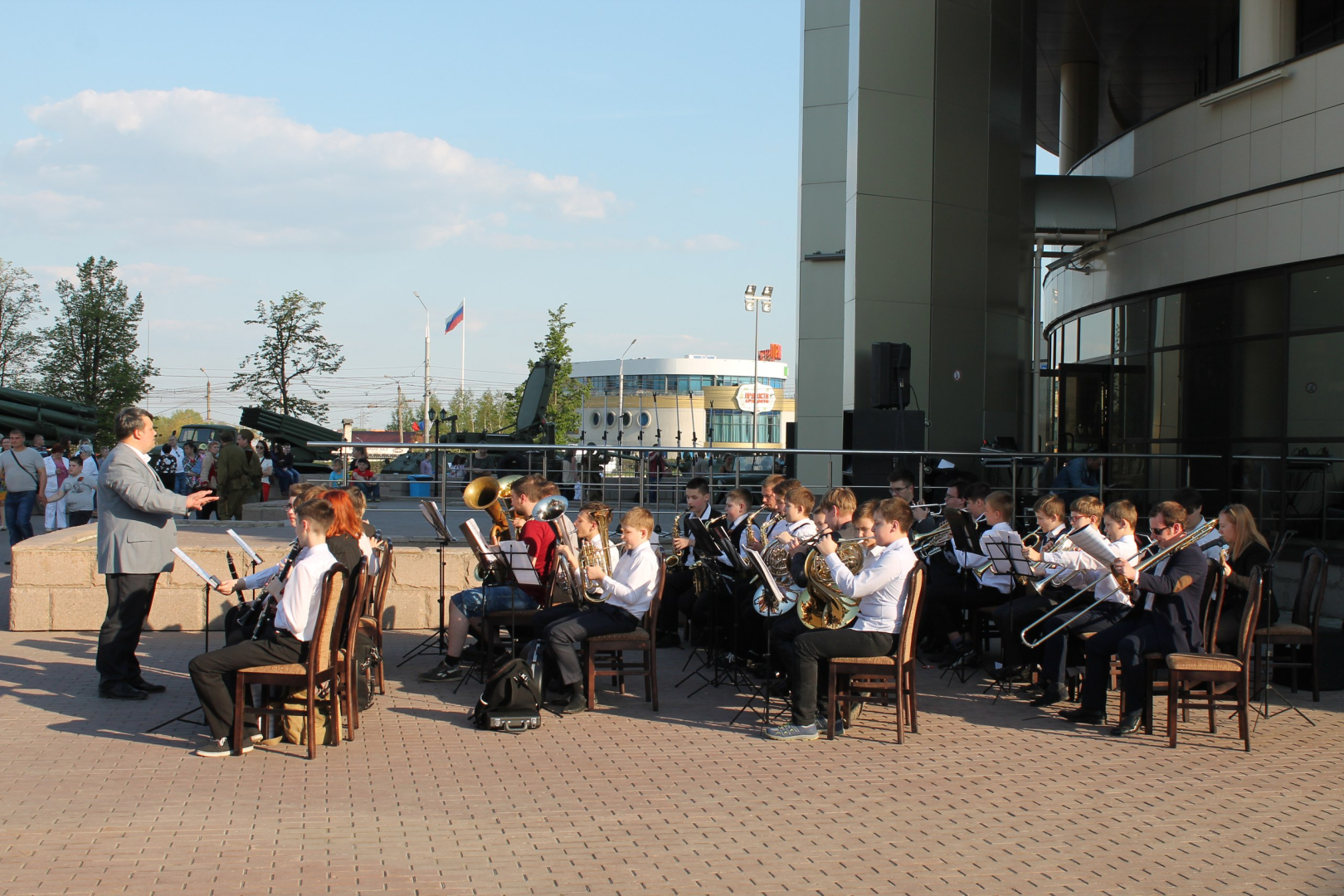 В шесть часов вечера на территории музея оружия праздничную программу, посвященную Дню Победы, продолжил сводный детский духовой оркестр Тульской области «Арсенал Брасс».