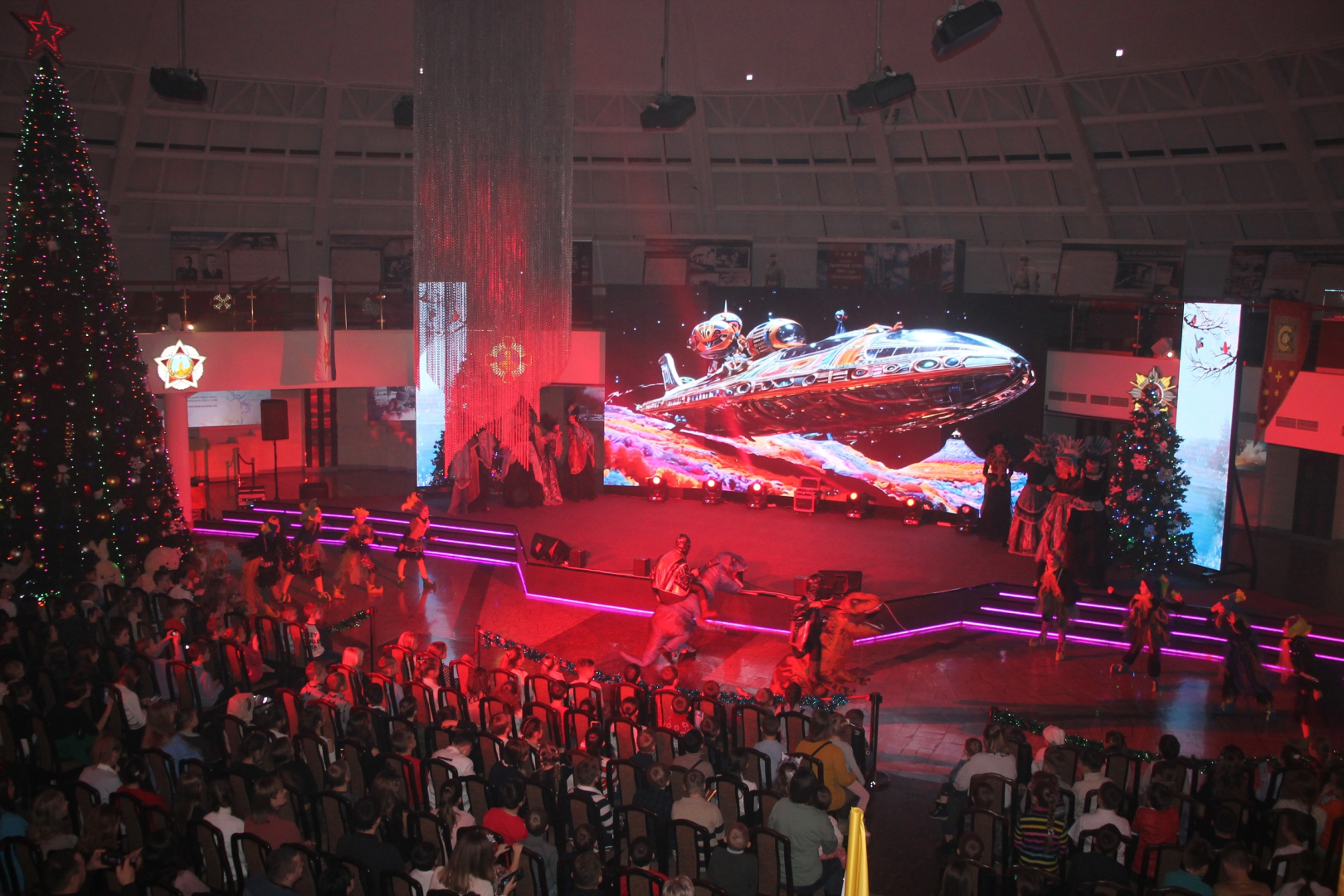 В Зале Славы российского оружия у десятиметровой красавицы-елки происходило сказочное интерактивное действо, наполненное невероятными поворотами событий.