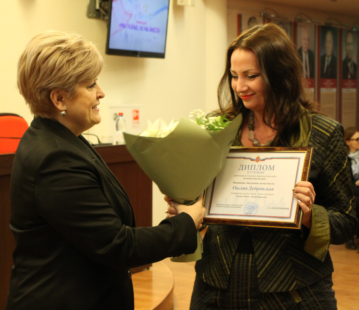 Победителей приветствовали председатель комитета Тульской области по печати и массовым коммуникациям Е.А. Красильников и уполномоченный по правам человека в Тульской области, председатель конкурсной комиссии Т.В. Ларина.