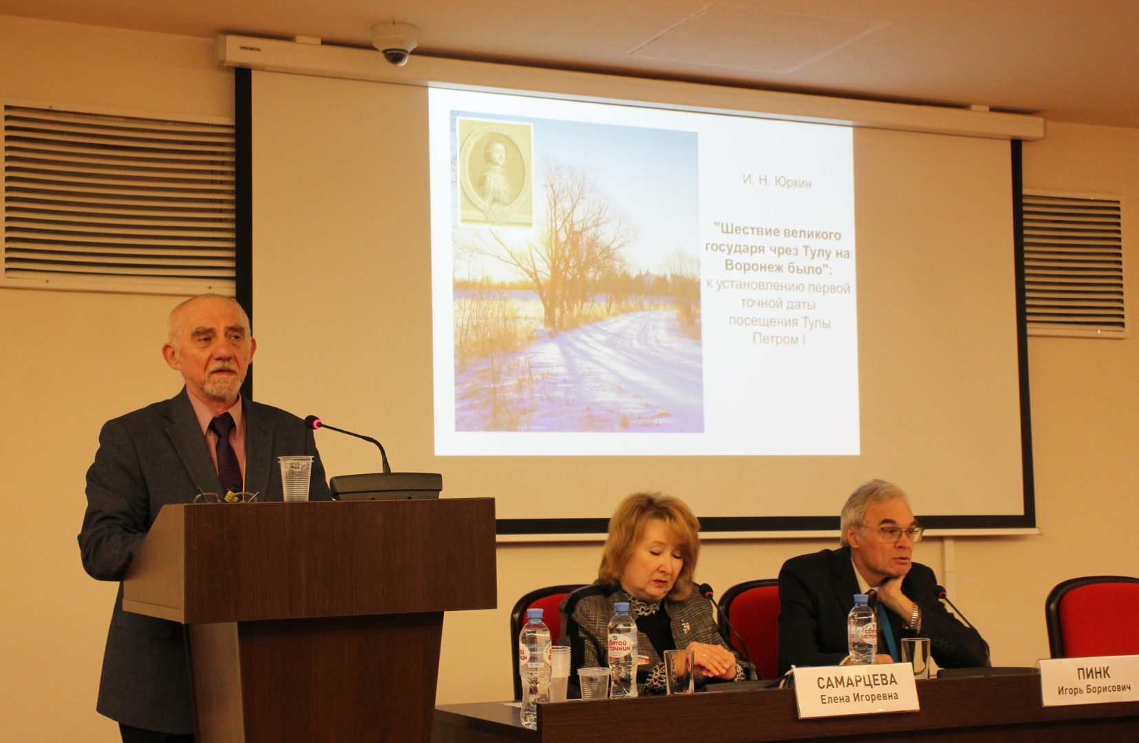 Пленарное заседание открыл доктор исторических наук, главный научный сотрудник Института истории естествознания и техники им. С.И. Вавилова РАН, Игорь Николаевич Юркин с докладом «”Шествие великого государя через Тулу на Воронеж было”: к установлению первой точной даты посещения Тулы Петром I». В ходе выступления были представлены новые, ранее неизвестные, исторические источники, фиксирующие факт пребывания великого российского правителя в городе Туле. Также И.Н. Юркин анонсировал 2-е издание своего фундаментального труда «Петр Железный. Петр Великий и Тульский край», впервые изданного в 2012 году.