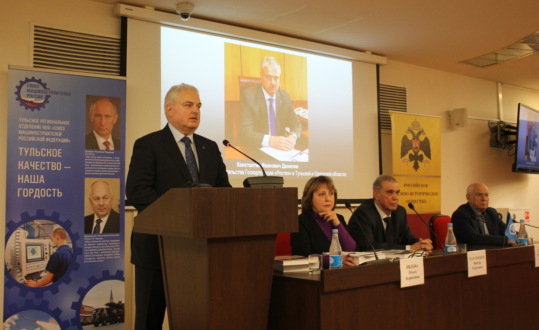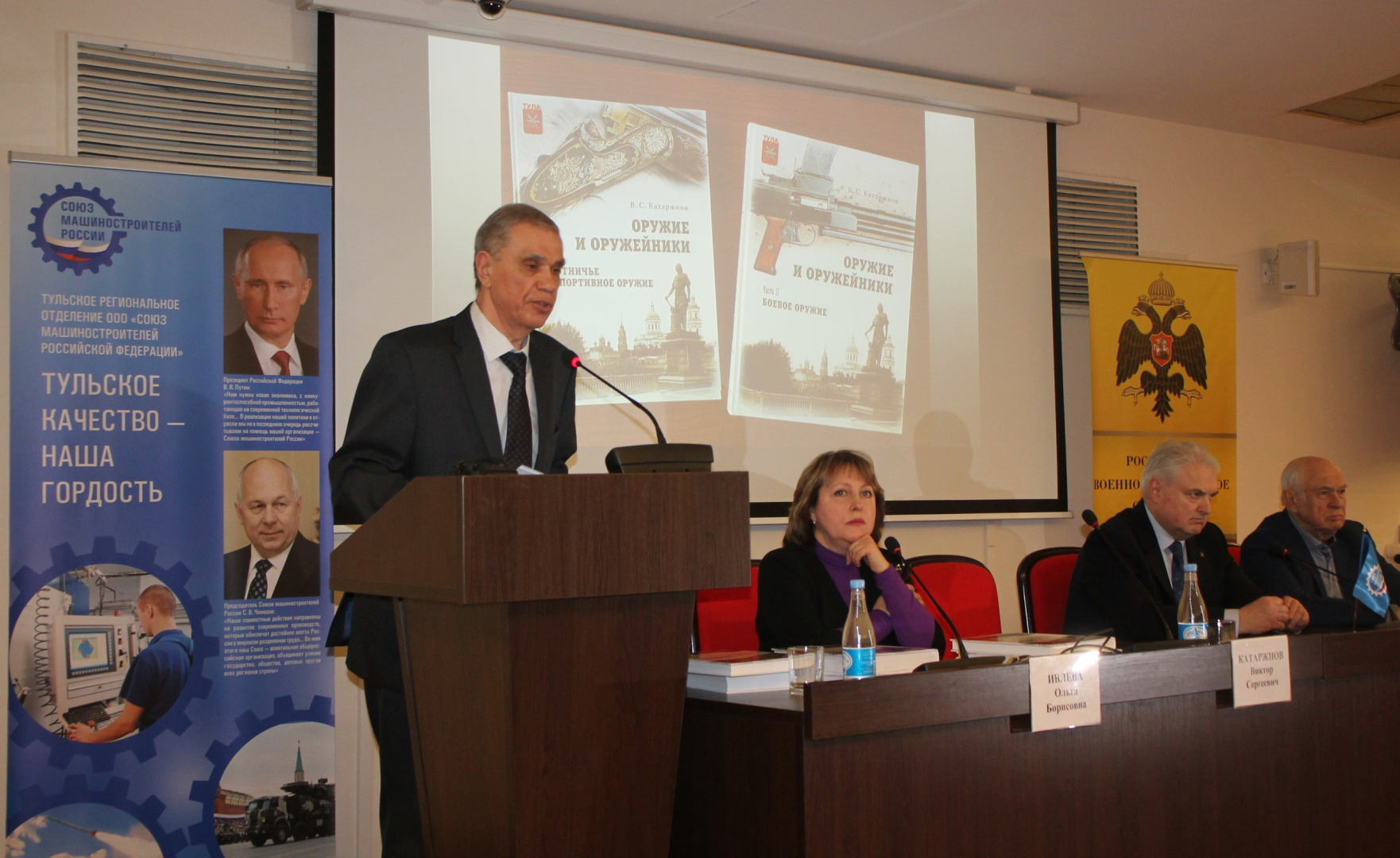 Открыл презентацию руководитель представительства Госкорпорации «Ростех» в Тульской и Орловской областях К.И. Данилов. Он высоко оценил монографию В.С. Катаржнова «Оружие и оружейники» как первый печатный труд, подробно освещающий историю предприятия, творческое наследие конструкторов-оружейников за 77 лет существования ЦКИБ.