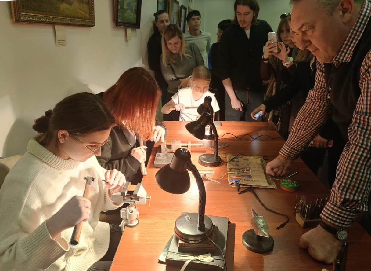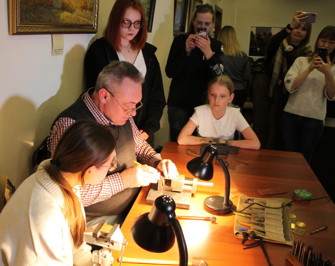 Кульминацией встречи стал мастер-класс по гравировке от Олега Семенова - члена Творческого союза «Гильдия мастеров-оружейников», Творческого союза художников России и Международной федерации художников; участника федеральных, региональных оружейных и художественных выставок, в том числе в Оружейной Палате Московского Кремля, в Тульском государственном музее оружия и других.