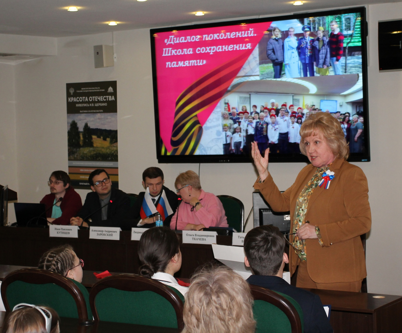 В диалоге поколений приняли участие заместитель директора Центра дополнительного образования детей Тульской области Филина Л.А., заместитель директора по культурно-образовательной деятельности, информационному обеспечению и связям с общественностью Тульского государственного музея оружия Ткачева О.В., директор Щекинского художественно-краеведческого музея Булатова Т.Ю., директор Волонтерского центра культурных традиций «Сердце доброты» Кутищев И.П., координатор-наставник Всероссийского конкурса «Большая перемена» Заровский А.А., а также представители советов школьных музеев - Плавской средней школы №1 имени дважды Героя Советского Союза Б.Ф. Сафонова, Бородинской средней общеобразовательной школы и тульского Центра образования №32 имени генерала Ивана Васильевича Болдина.