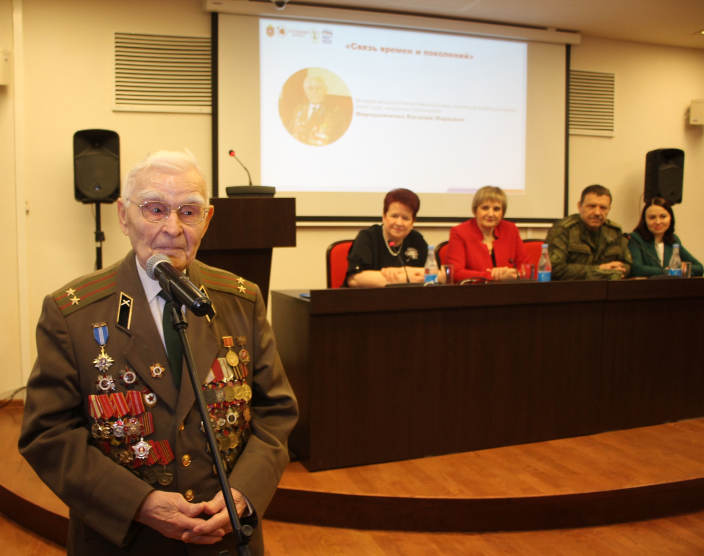 Глубоко эмоционально прозвучало напутствие к внукам и правнукам Поколения Победителей от ветерана Великой Отечественной войны, участника Сталинградской битвы Василия Марковича Мирошниченко, который сделал акцент на неразрывную связь поколений по защите Отечества, полное единение с российской армией, сохранение исторической памяти и лучших традиций патриотического воспитания молодежи.