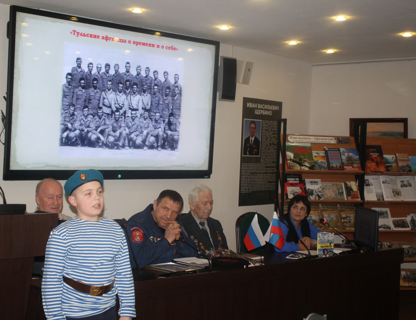 С большим интересом собравшиеся познакомились с новой книгой «Тульские афганцы о времени и о себе» гвардии майора медицинской службы, участника боевых действий в Афганистане, члена Союза писателей России Н.А. Макарова, прослушали стихи и песни, написанные туляками, выполнявшими воинский долг в Афганистане.