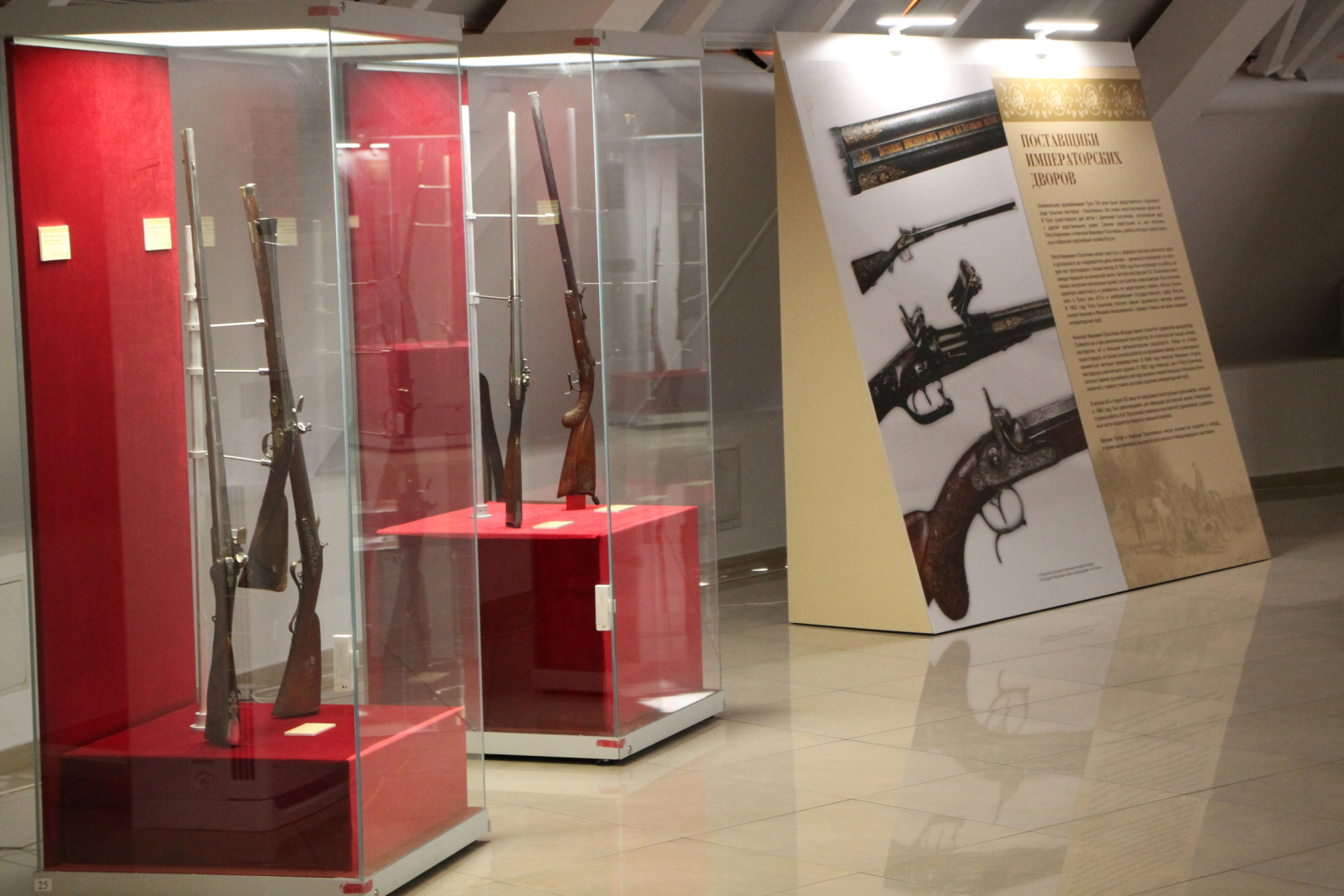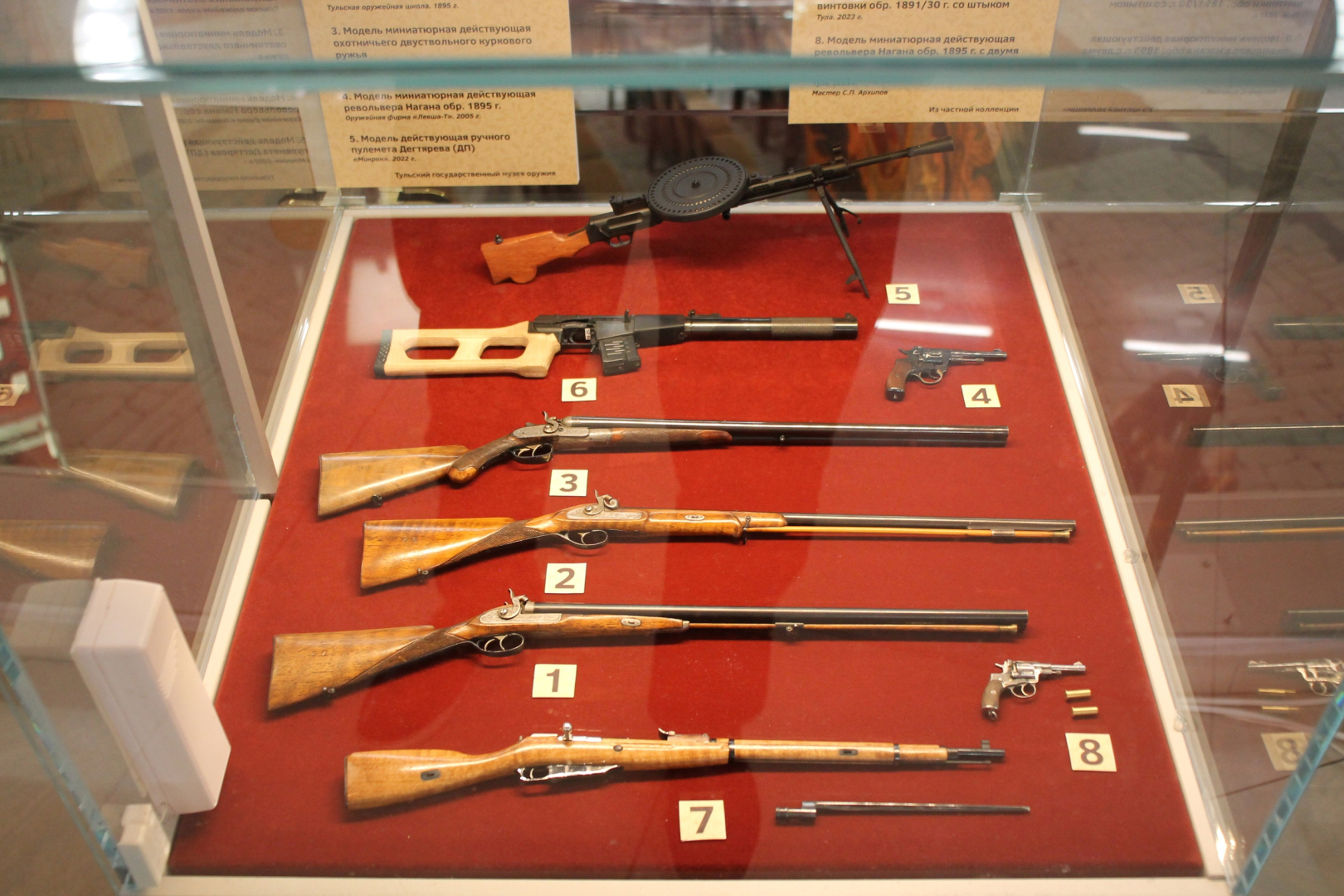Особое место на выставке занимают «царские» винтовки, филигранно украшенные мастером М.И. Степановым в память посещения Тульского оружейного завода императором Александром III и его супругой Марией Федоровной 9 мая 1887 года. Винтовка самодержца в 1890 году была отправлена в Гатчинский дворец и впоследствии стала жемчужиной коллекции Государственного музея-заповедника «Гатчина», в то время как экземпляр, изготовленный в честь императрицы, поступил в собрание Тульского государственного музея оружия. Спустя 133 года они снова вместе.