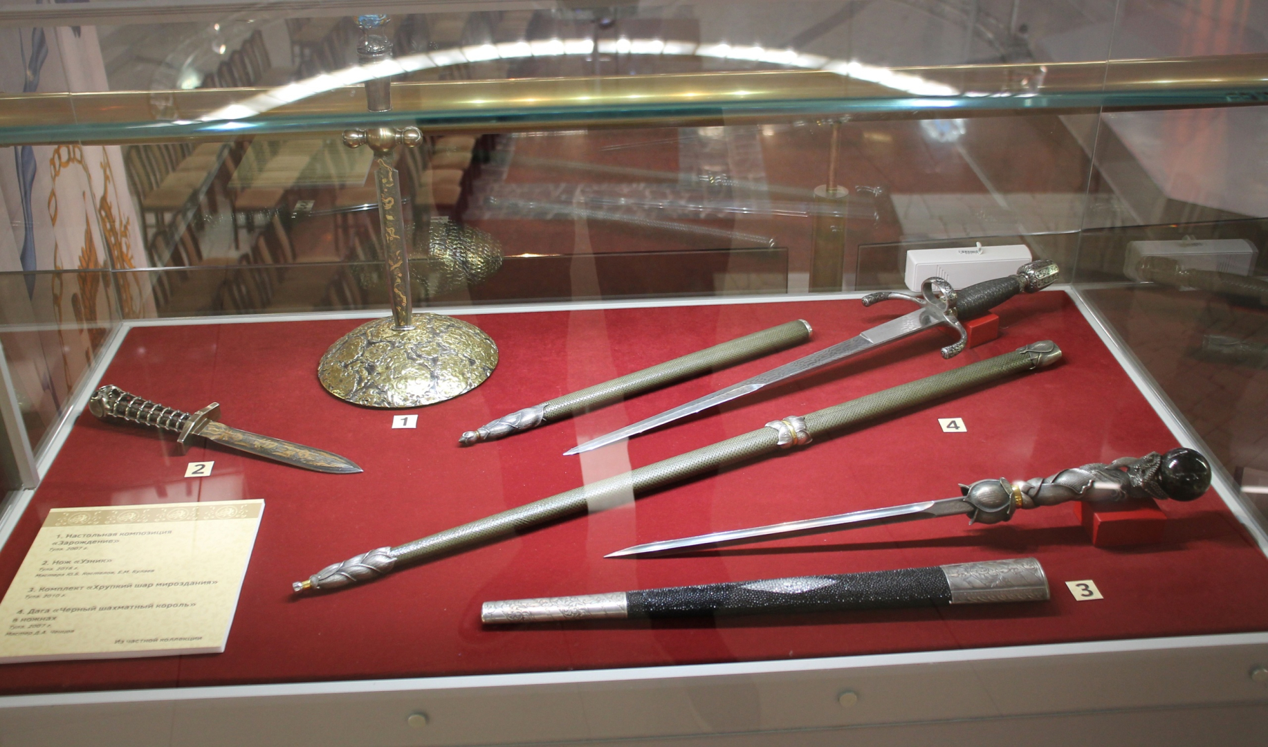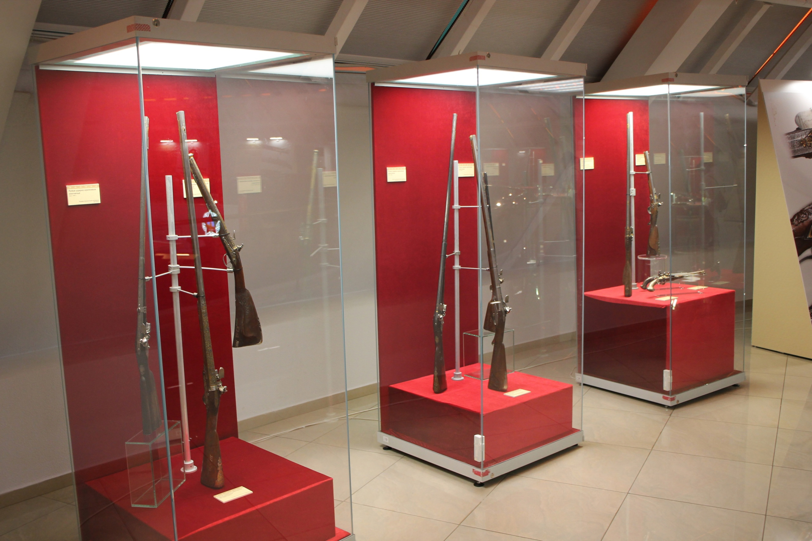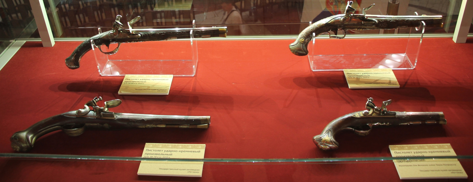 Вниманию посетителей представлено более 130 произведений XVIII–XXI веков: дуэльные пистолеты, авторское холодное оружие, охотничьи и спортивные ружья с утонченным декором, выполненным в разнообразных техниках обработки металла, дерева, кости и камня, а также действующие миниатюры оружия.