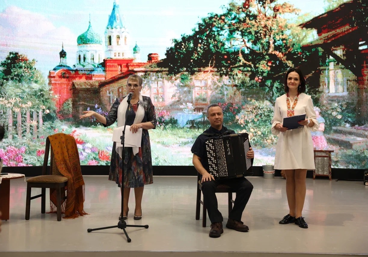 В поэтическое повествование органично влились звуки русской народной музыки. Обрядовые и плясовые песни тульского края в исполнении фольклорного коллектива «СМОРОДИНА» напомнили о вековых традициях и таланте нашего народа.