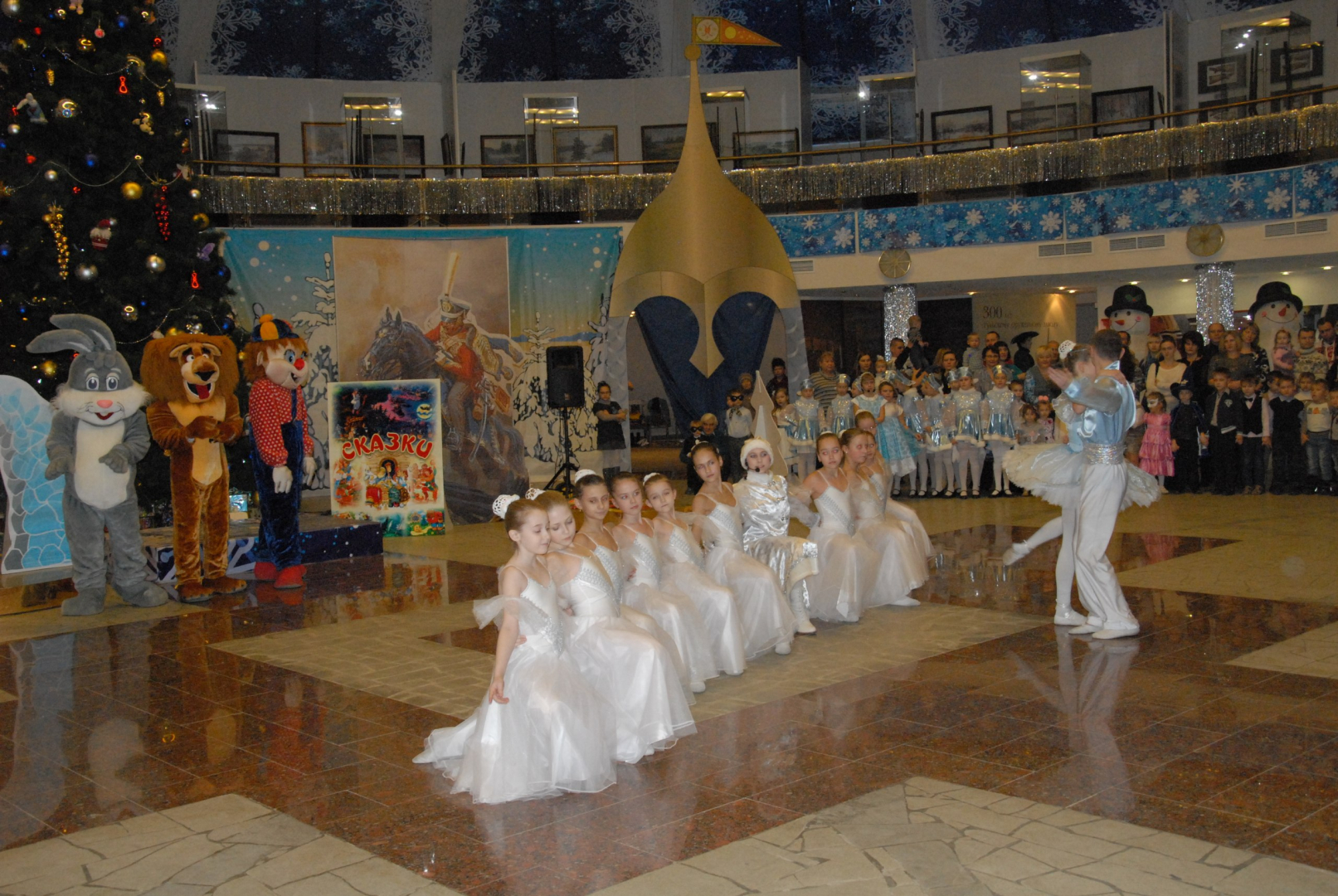 В музее оружия не смолкает детский смех! Сегодня ребят под новогодней красавицей-елкой встречали персонажи самых известных сказок: Белоснежка, Пьеро, Конек-горбунок, Дед Мороз и Снегурочка, а также олимпийские символы уходящего года – Леопард и Мишка.