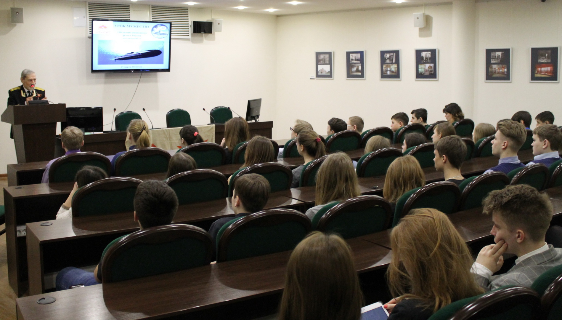 Сегодня, 17 марта, в рамках цикла мероприятий музея оружия, посвященных 110-летию подводного флота России, Урок мужества с учащимися центров образования № 10 и №20 провел капитан II ранга Северного флота, кандидат технических наук В.С. Горбунов.