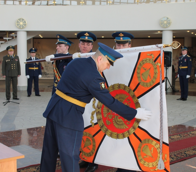 Начальник разведки воздушно-десантных войск Российской Федерации, генерал – майор О.О. Польгуев зачитал Грамоту Президента Российской Федерации к Боевому знамени воинской части Вооруженных Сил Российской Федерации и отметил, что «вручаемое знамя – официальный символ и воинская реликвия, олицетворение чести, доблести, славы и боевых традиций и беречь его надо, как себя и свою Родину».