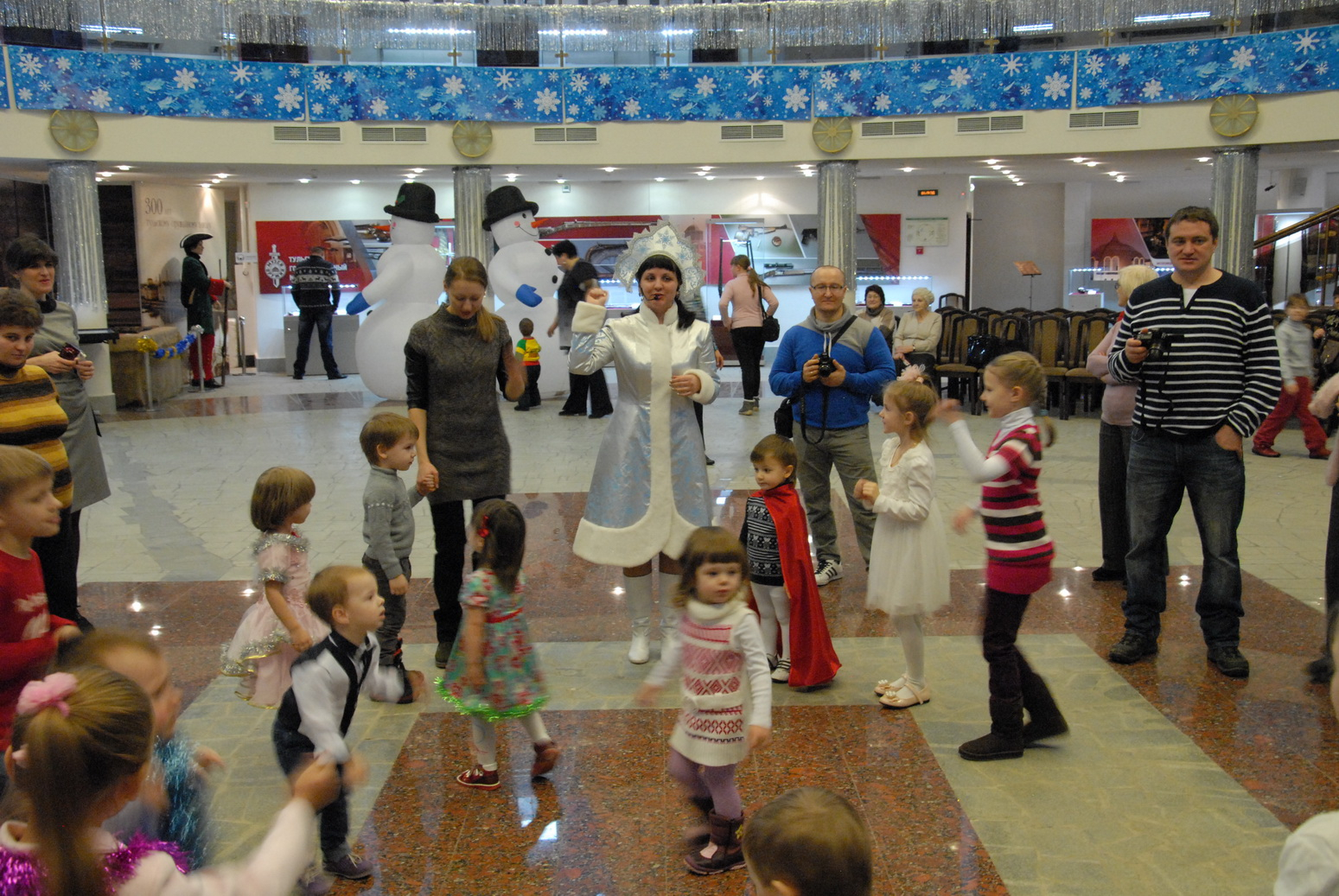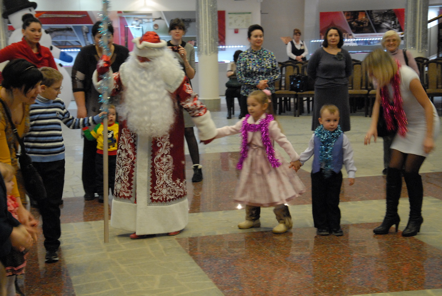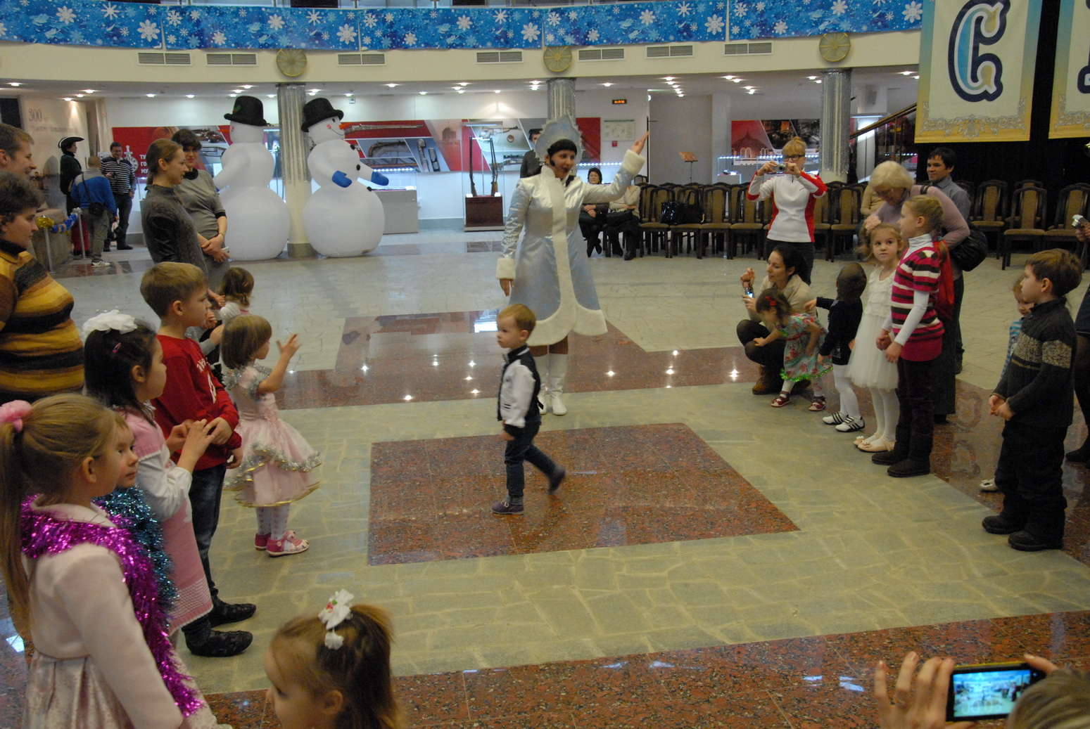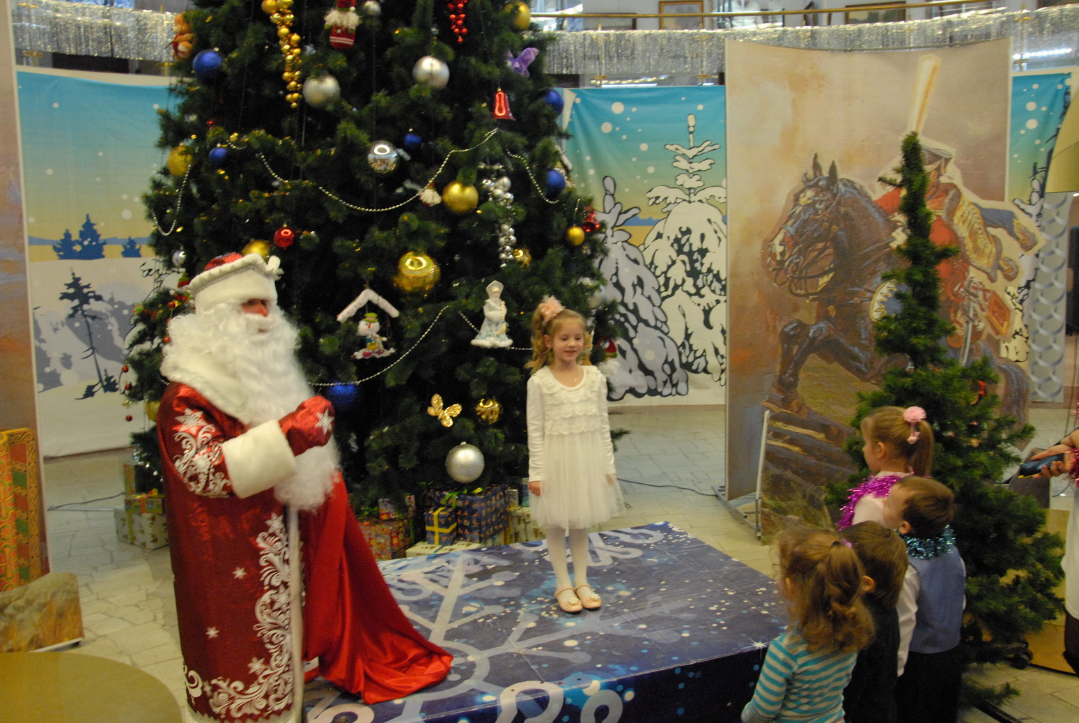 2 января под куполом волшебного шлема Дедушка Мороз и Снегурочка собрали своих маленьких друзей у новогодней елочки. Дети погрузились в мир зимней сказки, песен, хороводов, танцев, игр и сюрпризов. Глаза мальчишек и девчонок сияли счастьем, с их лиц не сходили улыбки! Настроение ребят передалось и взрослым. Ведь Новый год – это самый светлый, добрый, яркий праздник!