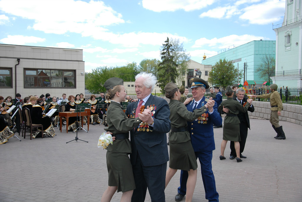 В течение дня проходила гражданско-патриотическая акция «Георгиевская ленточка», работали интерактивные площадки «Солдаты Победы» и «Стрелковый тир», действовала военно-полевая кухня, проводились театрализованные тематические экскурсии по выставкам музея, демонстрировались фильмы о Великой Отечественной войне. Ветераны кружились в вальсе Победы на танцевальной площадке «Весна 45-го года» под аккомпанемент оркестра народных инструментов «Ясная Поляна». Потрясающее и трогательное зрелище!